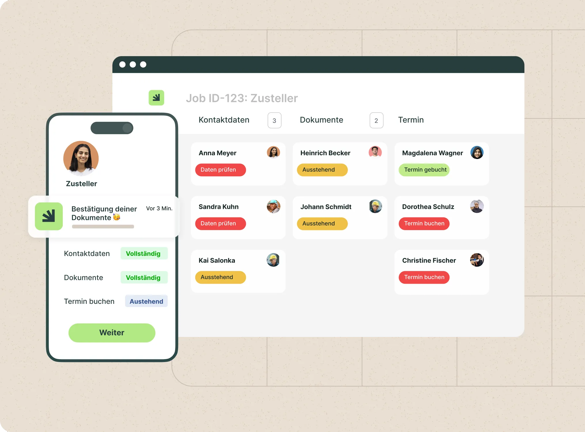 Unsere Plattform bewältigt problemlos hohe Bewerberzahlen und unterstützt Sie nahtlos bei Selektion, Vertragserstellung, Signatur und Dokumentenmanagement. Ideal für Unternehmen mit großem Personalbedarf oder hoher Fluktuation.